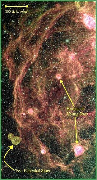 The red bubbles are gas clouds dominated by