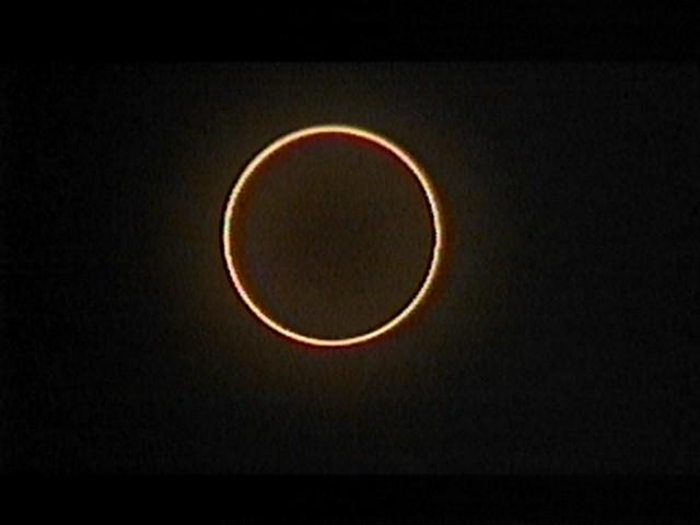 the edges of the Sun are still visible. This solar ring is so bright that the Moon's surface normally